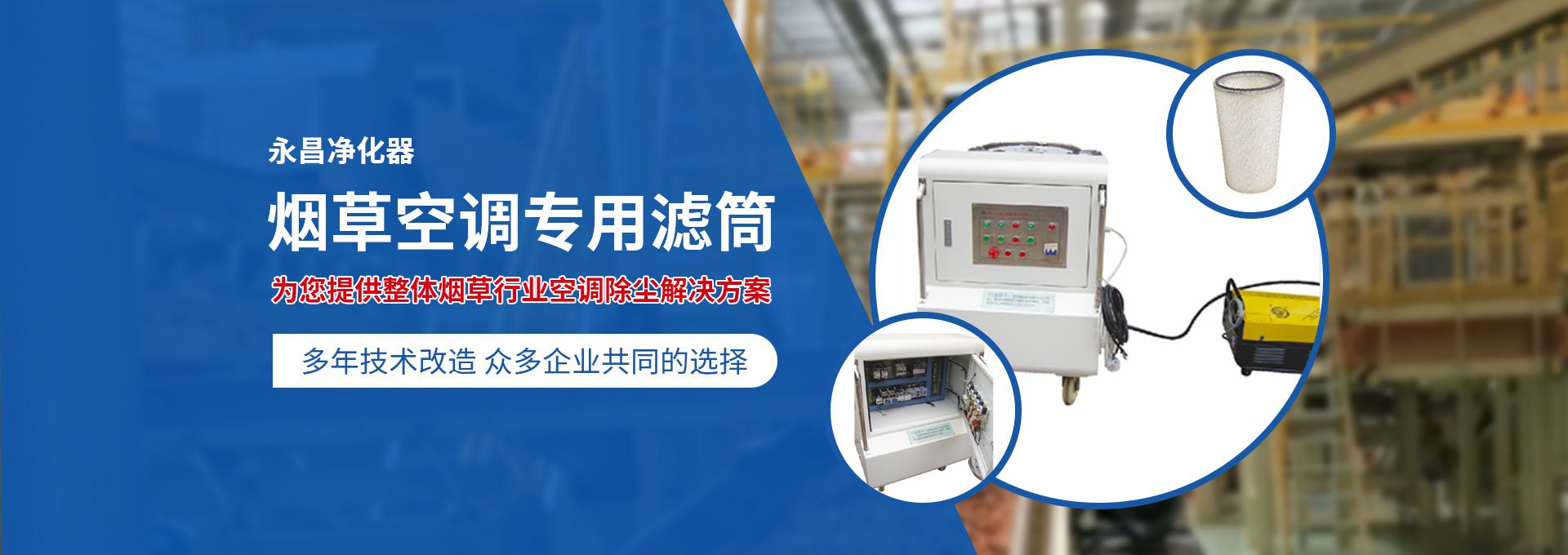 新鄉市永昌凈化器有限公司是生產煙草行業空調除塵專用濾筒的企業。注冊資金1000萬元。已通過ISO9001國際質量管理體系認證。對產品有嚴格的管理制度和售后服務。我公司以誠信、負責、守信譽、重質量的精神所生產的產品,近幾年來在煙草行業受到廣泛應用,并受到用戶的一致好評?! 囊痪啪潘哪暌詠頌闊煆S的空調設備服務。十幾年來,我們不斷走出去請進來學習新技術。定期到用戶那里咨詢情況:互相交流,認真聽取寶貴意見,不斷提高產品質量。從經濟和安全,方便的角度出發,根據煙廠濕度大的生產環境和濾筒收集到的含酸堿、氧化劑的粉塵。在空調箱工作狀態下我們頂著巨大的風壓危險在箱內停留了幾分鐘,認真查看濾筒工作情況,發現濾筒有并死狀態,造成濾筒不過濾、不過風、壓差高的現象。經幾十次試驗分析,在標本兼治的原則下,有針對性的解決了這一問題。 我公司針對煙廠制絲、卷接包、混絲間、儲絲房、冷卻床、梗膨化等不同的生產環境,